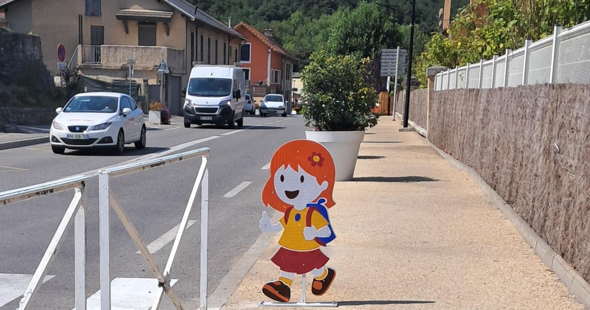 Dans le cadre de la sécurité routière, la municipalité a installé deux panneaux en forme de figurines d'enfants devant les passages piétons de l'école.